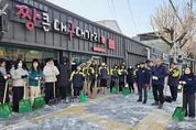 정안뉴스 김재홍 기자 | 함양군은 2월 2일 대설주의보가 발효된 가운데, 군민 불편을 최소화하기 위해 공무원과 민간이 함께하는 대대적인 제설작업을 실시했다고 밝혔다. 이날 제설작업에는 공무원, 의용소방대, 산불진화대원, 지역 주민 등 650여 명이 참여해 함양로, 고운로 등 주민 통행이 많은 보행 도로 6.5km 구간을 중심으로 제설작업을 진행했다. 이날 오전 6시 기준 적설량은 함양읍 3.5cm, 백전면 4.0cm로 집계됐으며, 군은 소금 27톤, 염화칼슘 25톤, 염수 6,000리터, 덤프 11대 등 가용 장비와 자재를 총동원해 관내 주요 도로와 보행로에 대한 제설작업을 실시했다. 진병영 함양군수는 추운 날씨에도 제설작업에 참여한 주민과 민간단체에 감사를 전하며 “그늘진 도로와 고갯길 등 취약 구간에서는 도로 살얼음이 발생할 가능성이 높다”라며 “군민 여러분께서도 내 집 앞 눈 치우기에 적극 동참해 주시고, 보행자와 운전자는 결빙에 특히 유의해 달라”고 당부했다. 함양군은 군민 안전을 최우선으로 삼아 주말에도 취약 구간에 대한 점검과 제설작업을 이어가는 한편, 기상 상황을 24시간 모니터링하고