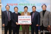 정안뉴스 김재홍 기자 | 고성군은 고성제일교회(담임목사 김종철)가 12월 11일 고성군청을 방문하여 지난달 8일 개최한 ‘제14회 사랑과 나눔 바자회’를 통해 조성한 수익금 500만 원을 관내 저소득층 지원을 위해 기탁했다. 고성제일교회는 매년 지역사회의 소외된 이웃을 돕기 위한 바자회를 개최하고 있으며, 올해로 14회를 맞은 ‘사랑과 나눔 바자회’는 교인과 지역주민 모두가 함께 참여해 따뜻한 나눔의 정을 실천하는 뜻깊은 행사로 자리매김하고 있다. 김종철 고성제일교회 담임목사는 “한마음으로 참여한 바자회를 통해 뜻깊은 나눔을 실천할 수 있어 감사하다”라며, “앞으로도 이웃에게 희망이 되고 지역사회에 온정을 전할 수 있도록 지속적으로 노력하겠다”라고 전했다. 이날 기탁된 성금은 경남사회복지공동모금회를 통해 관내 저소득층을 위해 소중히 사용될 예정이다. [뉴스출처 : 경상남도고성군]