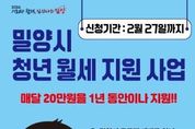 정안뉴스 김재홍 기자 | 경남 밀양시는 청년층의 주거비 부담을 줄이고 안정적인 정착을 돕기 위해 2026년 청년 월세 지원사업을 시행하고, 오는 2월 27일까지 희망자를 모집한다. 올해 지원 규모는 지난해 40명에서 100명으로 2.5배 확대되어, 더 많은 무주택 청년이 혜택을 받을 전망이다. 선정된 청년에게는 월 최대 20만원, 연간 최대 240만원의 월세를 지원한다. 지원 대상은 밀양시에 주소를 둔 18세~39세 무주택 세대주 청년이다. 세부 요건은 △기준중위소득 60% 초과 150% 이하 △임차보증금 1억원 이하 및 월세 60만원 이하 주택 거주자다. 신청은 경남바로서비스를 통해 온라인으로 가능하며, 자세한 사항은 밀양시 대표 누리집 새소식란을 참고하거나 밀양시 인구정책담당관으로 문의하면 된다. 시 관계자는 “청년 월세 지원 대상을 확대하여 보다 많은 청년들이 주거비 부담을 덜고 지역에 안정적으로 정착할 수 있기를 바란다”며, “앞으로도 청년 친화적인 도시 환경 조성을 위한 정책을 지속적으로 추진하겠다”라고 말했다. [뉴스출처 : 경상남도밀양시]