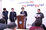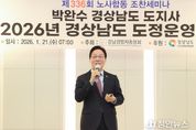 정안뉴스 김재홍 기자 | 경상남도는 21일 오전 창원 인터내셔널호텔에서 열린 ‘제336회 노사합동 조찬세미나’에서 도정 비전과 주요 정책 방향을 공유했다. ‘노사합동 조찬세미나’는 경남경영자총협회 주관으로, 경영계와 노동계 대표들이 한자리에 모여 지식을 공유하고 소통하는 자리다. 박완수 도지사는 인사말에서 “경영계와 노동계 대표 여러분께 감사드린다. 경남의 지속적인 발전은 현장에서 애써온 여러분의 노력 덕분”이라고 말했다. 이어 ‘2026 공존과 성장의 경남, 희망 점프(Jump)! 행복 업(Up)!’을 주제로 경남도의 비전과 정책 구상을 제시했다. 경남도 비전에는 미래 신산업 육성, 복지·안전 강화, 문화·관광 활성화, 균형발전 등 도민 삶 전반의 변화를 목표로 한 과제가 담겼다. 경남도는 올해 인공지능(AI), 우주항공, 방산·원전, 문화콘텐츠 등 미래 신산업을 중심으로 대규모 투자와 인재 양성을 추진해 경남의 새로운 성장 동력을 확보하겠다는 구상이다. 복지·안전 분야에서는 기존 경남형 복지 정책에 경남도민연금과 도민안전보험 등 새로운 시책을 도입하고, 기존 제도는 더욱 확대‧강화해