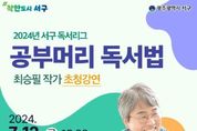 정안뉴스 박상욱 기자 | 광주광역시 서구(구청장 김이강)는 직원 및 주민들의 독서활동을 장려하기 위해 오는 12일 오후 4시 서구청 들불홀에서 독서 교육 전문가 최승필 작가를 초청해 ‘독서의 방법과 중요성’에 대한 특강을 진행한다. 최승필 작가는 '공부머리 독서법', '사람이 뭐야?'등의 베스트셀러를 집필했고 CBS ‘세상을 바꾸는 시간 15분’, EBS1 ‘부모 클래스’ 등 다양한 방송에 출연해 강연을 펼치고 있다. 또한 그는 책읽는 책방 ‘공독서가’의 책방지기이자, 독서교육 전문 팟캐스트 ‘우리 가족 공감 독서’ 진행자로 활동하고 있다. 강연 신청은 서구 통합도서관 누리집 또는 서구청 도서관과(062-350-4585)로 문의하면 된다. 한미 도서관과장은 “이번 강연을 통해 주민들이 책 읽는 방법을 배워 독서의 즐거움을 깨닫는 기회가 되길 바란다”며 “서구를 중심으로 책 읽는 문화가 널리 확산될 수 있도록 최선을 다하겠다”고 말했다. 한편 서구는 배움과 문화가 있는 독서 친화적 공직문화를 만들기 위해 서구 북클럽 독서동아리 운영으로 직원들의 자발적인 독서 참여를 유도하고 있다. 또한 소상공인과 함
