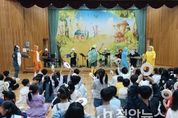 정안뉴스 박상욱 기자 | 금호평생교육관이 5월 17일부터 11월 1일까지 관내 초등학교 1, 2, 3학년을 대상으로 ‘찾아가는 공연 『토끼와 거북이의 신나는 국악 여행』’을 운영한다고 밝혔다. 금호평생교육관에 따르면 이번 공연은 학생들에게 전통의 가치를 담은 문화·예술 체험 기회를 제공해 친숙한 학교 공간을 연극무대로 탈바꿈시키고, 13명의 예술인이 무대를 꾸며 국악의 생동감 있는 연주를 전달하고자 기획됐다. 특히 이번 공연은 익숙한 전래동화에 국악을 접목해 대금·아쟁·장구 등 다양한 국악기의 종류에 대한 이해를 돕고, 학생들의 독서 의욕을 높일 수 있는 시간이 됐을 것으로 보인다. 공연을 관람한 학교 관계자는 “공연장을 쉽게 가지 못하는 아이들을 위해 학교까지 찾아와 주는 공연이 너무 필요했는데 학생들에게 책과 국악극이 주는 즐거움을 동시에 경험할 수 있는 좋은 시간이었다”라고 말했다. 금호평생교육관 선계룡 관장은 “문화예술과 독서교육이 융합된 공연을 통해 학생들이 즐거움과 교훈을 모두 얻어 가길 바란다”라며 “앞으로도 학교와 연계해 다양한 프로그램을 개발하여 지원할 계획이다”라고 말했다.