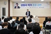 정안뉴스 박상욱 기자 | 광주광역시 서구는 지난 25일 상록도서관 2층 다목적실에서 강원국 작가를 초청해 글쓰기 특강을 진행했다. 강원국 작가는 8년 동안 대통령의 말과 글을 쓰고 다듬는 연설비서관으로 일했으며 대우 김우중 전 회장과 효성 전 조석래 회장의 스피치라이터였다. 특히 '대통령의 글쓰기', '나는 말하듯이 쓴다'등 다수의 베스트셀러를 집필하고 기업, 학교, 방송 등 다양한 곳에서 강연을 펼치고 있다. 이날 행사는 서구 독서동아리 ‘책씨앗’지원사업의 일환으로 추진됐으며 강 작가는 동아리 회원들에게 사람의 마음을 움직이는 글을 쓰는 방법과 글쓰기의 필요성, 시간과 글쓰기의 관계 등에 대한 교육을 진행했다. 강 작가가 “말하는 글쓰기에 가장 핵심적인 요소는 ‘시간’으로, 글쓰기에 시간을 들이면 누구나 글을 잘 쓰게 될 수 있다”며 “매일 조금씩이라도 글을 써보며 글 쓰는 방법을 자연스럽게 체화할 수 있다”고 강조했다. 한편 서구는 오는 7월 '이 책으로 어떤 대화를 나누게 될까?', '전역한 다음날 집을 나갔다'의 저자 권인걸 독서문화기획자를 초청해 하반기 서구 독서동아리 역량강화 특강을 실시