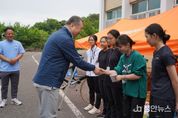 정안뉴스 박상욱 기자 | 광주광역시체육회(회장 전갑수)는 제53회 전국소년체육대회 현장 격려중 생일을 맞은 선수들을 축하했다. 25일부터~28일까지 개최되는 제53회 전국소년체육대회 기간중 생일을 맞은 참가선수 배구 등 9종목 10명의 선수들에게 경기장을 방문하여 깜짝 이벤트를 가졌다. 광주광역시체육회장은 33개 참가종목 중 한종목도 빠짐없이 격려하는 바쁜 일정에도 어린 꿈나무들이 대회기간 중 가족들의 생일축하도 받지 못하는 안타까운 마음에 친구들과 축하 할수 있도록 격려시 마다 케잌교환권을 선물했다. 이번 대회기간 중 생일을 맞은 선수들은 박성환(문흥중1년, 배구), 이용호(광주체중1년, 근대3종), 류수지(하남중3년, 펜싱), 남호현(조선대부속중1년, 핸드볼), 김은지(효동초5년, 핸드볼), 남호영(광주중2년, 씨름), 최은준(전대사대부중2년, 배드민턴), 양지율(방림초5년, 농구), 황원우(광주체중3년, 육상), 김수아(광주체중3년, 자전거)선수들이다. 전갑수 시체육회장은 "경기장을 직접 방문하여 선수단 격려와 함께 대회기간 중 생일을 맞은 선수들을 축하하며 좋은 추억으로 남길바라고 광주체육의