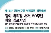 정안뉴스 안정주 기자 | 인천연구원은 2026년 3월 21일 오후 2시 30분, 청라블루노바홀에서 “검여 유희강의 예술세계 재조명과 K-Culture로의 확장”을 주제로 '제13차 현장동행 정책대화'를 개최한다. 인천연구원이 2026년부터 본격 시행 중인 ‘현장동행 정책대화’의 일환으로 마련된 이번 행사는 검여 유희강 서거 50주년을 기념해 인천서구문화재단과 공동주관으로 개최되며, 그의 예술세계와 정신을 재조명하고 K-Culture로의 확장 가능성을 모색하는 학술 심포지엄으로 진행될 예정이다. 이날 개회식에서는 김성하 인천서구문화재단 대표이사가 개회사를, 강범석 인천광역시 서구청장과 최계운 인천연구원장이 축사를 맡는다. 이어 진행되는 첫 번째 발표에서는 박재복 경동대학교 국제융합학부 교수가 “검여 유희강의 위상 재정립과 예술정신 계승”을, 두 번째 발표에서는 안현정 성균관대학교 박물관 학예실장이 “검여 예술의 현대적 해석과 공공문화·동시대 활용 가능성 확장 논의”를 주제로 발표한다. 종합토론 사회는 전 경기도박물관 관장인 이동국 독립큐레이터가 맡으며, 토론에는 김창수 인하대학교 초빙교수, 최영화
