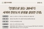 정안뉴스 안정주 기자 | 인천광역시교육청중앙도서관은 시민들의 인문학적 소양을 높이고 평화의 가치를 확산하기 위해 오는 11월 ‘인문 아카데미’를 운영한다. 이번 아카데미는 ‘벌거벗은 세계사’, ‘역사저널 그날’ 등에 출연한 류한수 상명대학교 교수를 초청해 ‘전쟁으로 읽는 20세기: 세계와 한반도의 운명을 결정한 전쟁’을 주제로 11월 6일부터 27일까지 매주 목요일 오후 7시, 4회에 걸쳐 진행된다 류 교수는 제2차 세계대전의 배경과 전개 과정을 세계사적 시각에서 살펴보며, 전쟁이 한반도와 세계 현대사에 미친 영향을 입체적으로 조명할 예정이다. 또한 11월 18일에는 인천난정평화교육원, 망향대, 대룡시장 등을 방문하는 평화체험 프로그램 ‘격강천리라더니!’를 운영해 시민들이 역사적 현장을 직접 둘러보며 평화의 소중함을 체험할 수 있도록 했다. 참가 신청은 10월 23일 오전 10시부터 중앙도서관 누리집에서 가능하며, 자세한 사항은 종합자료실로 문의하면 된다.
