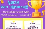 정안뉴스 안정주 기자 | 이천시는 행정안전부 주관 ‘2025 코리아그랜드페스티벌(KOREA GRAND FESTIVAL)’에 맞춰 지역화폐 이용을 촉진하고 지역 상권을 활성화하기 위한 ‘이천사랑 지역화폐 캐시백 5% 이벤트’를 추진한다고 밝혔다. 이번 행사는 10월 29일부터 11월 9일까지 12일간 전국에서 동시에 개최되는 코리아그랜드페스티벌 소비촉진 캠페인의 하나로, 이천시는 국비 1억 5천만 원을 확보해 사용자 충전금으로 결제한 금액에 한정해 결제금액의 5%를 적립금(인센티브, 정책수당 등으로 충전된 금액 사용분은 지급 대상에서 제외)으로 지급한다. 이용자는 이천사랑지역화폐를 통해 1인당 최대 20,000원까지 5% 적립금을 받을 수 있으며, 별도의 신청 절차 없이 자동으로 지급된다. 지급된 적립금의 사용 유효기간은 5년이며, 이천시 지역화폐 가맹점에서 자유롭게 사용이 가능하다. 이천시는 이번 행사를 통해 시민의 실질적인 소비 혜택과 지역 상권 활성화를 동시에 도모할 계획이다. 김경희 이천시장은 “코리아그랜드페스티벌 이천사랑지역화폐 캐시백 이벤트를 통해 지역 소비가 활발히 이어지고, 소상공인 매출 회복의 기