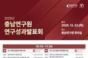 정안뉴스 황도연 기자 | 충남연구원은 오는 23일 오전 9시부터 연구원(공주 본원)에서 ‘2025년 연구성과발표회’를 개최하고, 올 한 해 동안 축적한 연구성과를 도 및 시·군 정책 수요자와 도민에게 공유하는 자리를 마련한다고 밝혔다. 이번 발표회는 지방소멸, 탄소중립·기후위기, 지역산업 및 농촌, 인구·정주, 고등교육·과학기술, 미래 신산업, SOC 등 민선 8기 충남의 핵심 정책방향을 종합적으로 제시하는 자리다. 연구원 관계자는 “발표회는 2025년 충남연구원의 연구결과물을 체계적으로 정리·환류해 정책활용도를 높이고, 도민 삶의 질 향상에 실질적으로 기여할 수 있는 실행 가능한 정책과제를 확산하는 것을 목표로 한다”고 말했다. 올해는 주제별 13개 분과에서 총 41개 과제의 발표와 토론으로 진행된다. 먼저 A세션(10:10~11:30)은 지역산업Ⅰ, 농촌공동체·복지, 정주환경, 인구정책Ⅰ 등 4개 분과로 나뉘어 시작된다. 이어지는 B세션(13:30~14:50)은 문화관광, 인구정책Ⅱ, 환경Ⅰ, 지역개발 등으로 구분해 진행된다. 그리고 마지막 C세션(15:20~16:40)인 환경Ⅱ, 지역소멸 대응, 지역산업Ⅱ