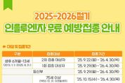 정안뉴스 황도연 기자 | 계룡시는 겨울철 호흡기 감염병 유행에 대비해 내년 4월 30일까지 ‘2025-2026절기 인플루엔자(독감) 무료 예방접종’을 실시한다고 밝혔다. 시는 13일 기준으로 어린이, 임신부 대상으로 접종을 진행 중에 있으며, 오는 15일부터는 75세 이상 어르신, 20일부터는 70∼74세 어르신, 22일부터는 65∼69세 어르신에 대한 접종을 순차적으로 시작할 예정이다. 아울러, 백신이 소진될 때까지 관내에 거주하는 14세∼64세 국가유공자, 장애인, 기초생활수급자를 대상으로도 무료 예방접종을 실시할 계획이다. 특히 65세 이상 어르신은 인플루엔자(독감)과 코로나19의 유행에 대비해 두 백신을 같은 날 함께 접종하는 것이 가능하다. 예방접종을 희망하는 시민은 신분증과 관련 증명서를 지참해 가까운 위탁의료기관을 방문하면 접종이 가능하며, 위탁의료기관은 보건소 홈페이지 및 예방접종도우미 누리집에서 확인할 수 있다. 시 보건소 관계자는 “인플루엔자(독감) 예방접종은 감염병으로 인한 질병과 합병증을 줄이는 가장 확실한 방법”이라며, “올겨울 유행에 대비해 예방접종에 적극 참여