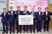 정안뉴스 황도연 기자 | 충남 서산시와 홍성군 농축협이 고향 사랑 교차 기부를 통해 상생의 뜻을 모았다. 시는 10일 시청 시장실에서 ‘서산시·홍성군 농축협 고향사랑 교차기부식’이 열렸다고 밝혔다. 이날 기부식에는 이완섭 서산시장, 송연광 농협중앙회 서산시지부장, 김종수 농협중앙회 홍성군지부장 등이 참석했다. 이번 교차기부는 고향사랑기부제의 안정적인 정착과 지역 간 유대 강화를 위한 것으로, 각 지역 농축협 임직원들의 자발적인 참여로 추진됐다. 시에 따르면, 각 지역 농축협 임직원 712명이 이번 교차기부에 동참한 것으로 알려졌다. 서산시 농축협은 홍성군에 3천8백만 원을, 홍성군 농축협은 서산시에 3천5백만 원을 고향사랑기부제를 통해 기부했다. 송연광 지부장은 “농산물 소비 촉진과 농업 ․ 농촌 ․ 지역경제를 살리는 고향사랑기부제에 더 많은 관심을 기울이겠다”라며 “앞으로도 지역의 지속 가능한 성장을 위한 고향사랑기부제에 임직원들이 적극 동참해 나갈 수 있도록 노력하겠다”라고 말했다. 이완섭 서산시장은 “상생과 협력의 뜻을 모아 기부에 동참해 주신 농협 임직원