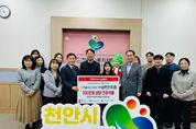정안뉴스 황도연 기자 | (재)천안시복지재단은 22일 NH농협은행 남천안지점이 100만 원 상당의 건강식품을 후원했다고 밝혔다. NH농협은행 남천안지점은 지난 2016년부터 정기후원에 참여하며 지역사회 나눔 문화 확산에 기여하고 있다. 또 매년 저소득층의 생애주기별 맞춤형 사회공헌활동을 이어오며 재단의 든든한 동반자 역할을 하고 있다. 이동현 지점장은 “지난해 학교 밖 청소년 지원에 이어 올해는 저소득 어르신들의 건강증진을 돕기 위해 후원에 동참했다”며 “임직원 모두가 뜻을 모아 기업의 사회적 가치인 상생을 실천할 수 있어 뜻깊게 생각한다”고 말했다. 이운형 천안시복지재단 이사장은 “크리스마스를 앞두고 따뜻한 나눔을 실천해주신 NH농협은행 남천안지점에 감사드린다”며 “후원자와 함께 나눔의 가치를 확산하는 데 최선을 다할 것”이라고 말했다. 한편 NH농협은행 남천안지점은 천안시 나눔 문화 확산에 기여한 공로를 인정받아 오는 29일 열리는 나눔 문화 유공자 표창식에서 천안시장 권한대행 부시장 표창을 받을 예정이다.