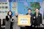 정안뉴스 황도연 기자 | 보령시는 지난 19일 시장실에서 청소영농조합법인과 삽시도 금송사 죽림선원으로부터 총 1,610만 원 상당의 후원물품을 기부받았다고 밝혔다. 이번 기부는 연말을 맞아 경제적 어려움을 겪고 있는 취약계층과 복지 사각지대 가구가 따뜻한 겨울을 보낼 수 있도록 돕기 위해 마련됐다. 청소영농조합법인은 자체 개발한 사포닌 쌀(브랜드명: 오서산 대풍미) 4kg 200포(1,080만 원 상당)를 보령시에 전달했다. 기탁된 사포닌 쌀은 청소영농조합법인에서 오랜 연구를 통해 사포닌 성분을 쌀 자체에 함유하도록 개발한 고품질 기능성 쌀로, 뛰어난 영양가와 특유의 구수한 풍미를 자랑하는 쌀이다. 이양표 대표는 “한 해를 마무리하며 우리 주변의 어려운 이웃들에게 보약 같은 밥 한 끼를 대접하고 싶어 직접 수확한 쌀을 준비했다”며 “앞으로도 맛 좋고 건강한 쌀 생산은 물론 농업인들을 웃게 하는 영농조합이 되도록 노력하겠다”고 말했다. 같은 날 삽시도 금송사 죽림선원은 530만 원 상당의 겨울 이불 35채를 기탁했다. 이번 기부는 본격적인 한파가 시작되는 연말을 맞아 주거 환경이 열악하거