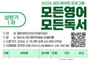 정안뉴스 황도연 기자 | 천안시 청수도서관은 오는 3~ 6월 원어민과 함께하는 성인 영어 프로그램 ‘모든 영어 모든 독서’를 운영한다고 13일 밝혔다. 이번 프로그램은 수준별 영어독서 및 회화 과정으로, 초급 2개 강좌와 중급 1개 강좌로 구성됐다. 초급 강좌는 ‘Intro Storybooks’와 ‘Travel the World’로, 동화책과 그림책을 활용해 자연스럽게 영어의 첫걸음을 뗄 수 있도록 마련됐다. 중급 강좌는 ‘Dreams of Heroism’으로, 영시를 함께 읽고 깊이 있는 감상을 나누는 시간을 갖게 된다. 수강 신청은 오는 19일 오후 2시 천안시도서관 누리집을 통해 가능하며, 자세한 사항은 전화로 문의하면 된다. 이재순 청수도서관장은 “이번 강좌가 시민들의 영어 독해 능력 향상과 인문학적 소양 함양의 디딤돌이 되길 기대한다”고 말했다.