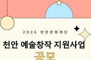 정안뉴스 황도연 기자 | (재)천안문화재단은 ‘천안 예술창작 지원사업’ 공모를 진행한다고 13일 밝혔다. 모집 분야는 전문예술인, 전문예술단체, 신진예술인, 신진예술단체, 생애 최초 지원, 신생예술단체, 생활예술동호회, 장애인, 전통문화예술 계승 등 총 9개 사업이다. 신청 대상은 공고일 기준 천안에 주소지를 두고 예술 활동을 하는 예술인 및 단체, 동호회, 장애 예술인 및 단체다. 신청을 희망하는 경우 필수 이행 조건에 따라 공모 신청 전 천안문화 예술뱅크에 가입해야 한다. 더 많은 예술인에게 혜택을 지원하기 위해 3년 연속 보조금 수혜단체를 대상으로 1년 안식년제가 적용된다. 또 개인 예술인은 격년 지원이 적용돼 지난해 지원받은 예술인은 올해 신청할 수 없다. 신청 접수는 내달 9~ 13일 재단 예술인지원팀에 방문 또는 우편으로 하면 된다. 자세한 사항은 재단 누리집에서 확인할 수 있다.