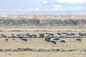 정안뉴스 황도연 기자 | 충남 서산시는 천수만에 방문한 흑두루미가 1천 개체를 넘어섰다고 밝혔다. 시는 지난 12일 국제적 보호종인 흑두루미의 안정적인 서식 환경 조성을 위해 먹이 8톤을 제공했다. 먹이는 벼로, 부석면 창리, 간월도 등 천수만 일원에 뿌려졌다. 시는 ‘야생 포유류 조류인플루엔자 표준행동지침’에 따라 최소한의 인원으로 먹이를 제공했다. 지난 9일부터 일본 이즈미 지역에서 흑두루미가 북상하고 있으며, 천수만에 도래한 흑두루미의 개체수는 지속적으로 증가하고 있다. 시는 흑두루미 도래 상황을 상시 파악하고 있으며, 오는 3월까지 먹이를 제공할 계획이다. 심영복 서산버드랜드사업소장은 “천수만은 흑두루미의 중간 기착지로서 중요성이 매년 증가하고 있다”라며 “국제적인 협력을 통하여 보호종 흑두루미의 안정적인 서식환경 제공 및 관리에 최선을 다하겠다”라고 말했다. 한편, 흑두루미는 국내에서 천연기념물과 멸종위기 야생생물 2급으로 지정해 보호하고 있다.