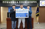 정안뉴스 황도연 기자 | 천안 동남경찰서(서장 송해영)는 2025년 12월 19일(금) 오후 2시, 천안동남경찰서 중회의실에서 무에타이·MMA 전문 체육관인 ‘천무짐’(관장 문보람)과 ‘경찰관 체력 증진 및 복지 향상’을 위한 업무협약(MOU)을 체결했다고 밝혔다. 이번 협약은 각종 치안 현장에서 활동하는 경찰관들의 강인한 현장 대응력을 기르고, 격무에 시달리는 직원들의 건강한 삶을 지원하기 위해 마련됐다. 협약에 따라 천무짐은 천안동남경찰서 소속 현역 경찰관 및 전 직원, 그리고 그들의 직계가족에게 수강료 50% 할인 혜택을 제공하기로 했다. 대상 종목은 ⯅MMA(종합격투기) ⯅킥복싱 ⯅복싱 ⯅레슬링 ⯅다이어트반 등이며, 상담 시 공무원증을 제시하면 혜택을 받을 수 있다. 천안동남경찰서장은 “이번 협약을 통해 직원들이 평소 접하기 어려웠던 실전 격투 스포츠를 통해 체력을 키우고 스트레스를 해소하는 데 큰 도움이 될 것으로 기대한다”며 “앞으로도 직원들이 건강하게 근무할 수 있는 환경을 만들기 위해 다양한 복지 혜택을 발굴해 나가겠다”고 말했다. 한편, ‘천무짐’은 천안시 서북구 성정공원3길에 위치