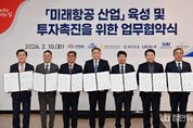 정안뉴스 황도연 기자 | 대한민국 미래항공산업 핵심 거점으로 비상 채비를 서두르고 있는 충남 태안 천수만에 항공·방산·우주 분야 글로벌 기업들이 응원군으로 떴다. 김태흠 지사는 10일 태안문화예술회관에서 성일종 국회의원, 이정석 국방과학연구소 부소장, 대한항공·LIG넥스원·한국항공우주산업(KAI)·한화에어로스페이스 등 4개 참여 기업 관계자가 참석한 가운데 미래항공 산업 육성 및 투자 촉진을 위한 업무협약을 체결했다 이번 협약은 태안 천수만 B지구 일원에 건립 추진 중인 국방미래항공연구센터 연계 기업 지원 인프라를 토대로, 미래항공산업 전략적 거점을 육성하고, 지역 신성장동력 창출을 위해 상호 협력하기 위해 맺었다. 협약 기관 및 기업은 우선 △국방미래항공연구센터 등 연구 및 기업 지원 인프라 조성 △중앙·지방정부 및 기업의 원활한 사업 추진을 위한 각종 협력 △공공·민간 투자 예산 확보 등에 힘을 모으기로 했다. 이와 함께 도는 국방미래항공연구센터 연계 특화산업단지 조성, 교통 등 정주여건 개선 및 안정적인 용수·전력 공급 등 기업 유치 기반 구축, 기업 투자 활동에 대한 행·재정적 지원에 나선다.