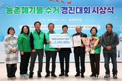 정안뉴스 황도연 기자 | 충남도가 농촌폐기물 수거체계 개선에 앞장서 온 우수마을을 표창하고, 그동안 추진한 사업의 성과를 공유하는 자리를 마련했다. 도는 16일 홍성문화원에서 박정주 도 행정부지사를 비롯해 송근선 한국환경공단 충청권본부 자원순환관리처장, 정해웅 농협중앙회 충남세종본부장, 이민수 한국농어촌공사 충남본부장, 성낙구 도 새마을회장, 시군 관계자 등 200여 명이 참석한 가운데, ‘2025년 농촌폐기물 수거 경진대회 시상식’을 개최했다. 도와 한국환경공단, 농협중앙회, 한국농어촌공사가 공동주최한 이날 행사는 △폐기물관리 유공자 표창 △우수마을 시상 △농촌폐기물 관리 레크리에이션 순으로 진행됐다. 심사는 지난해 11월부터 올해 10월까지 수거 실적(계량)과 수거 노력(비계량) 등을 종합해 기후에너지환경부 장관상 1곳, 한국환경공단 이사장상 4곳, 농협중앙회장상 10곳, 한국농어촌공사 사장상 3곳 등 총 18개 마을을 선정했다. 특별상인 한국농어촌공사 사장상은 폐비닐 발생량이 적은 소규모 마을에도 동기를 부여하기 위해 전년 대비 향상도가 높은 마을을 선정해 시상했다. 영예의 장