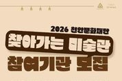 정안뉴스 황도연 기자 | (재)천안문화재단은 오는 17일~ 내년 1월 4일 ‘찾아가는 미술관’ 사업을 추진한다고 12일 밝혔다. 재단은 시민들이 일상 속에서 자연스럽게 예술을 접할 수 있도록 지난 2023년부터 행정기관과 도서관, 복지시설 등에 재단이 소장하고 있는 회화, 판화, 사진 등 시각예술 작품을 무상 대여하고 있다. 내년에는 더 많은 생활공간이 예술로 채워질 수 있도록 참여 대상을 확대하고, 기관별 특성에 맞는 맞춤형 전시를 제공할 계획이다. 대여 기간은 3개월이며, 사전 협의를 통해 최대 3개월까지 연장이 가능하다. 이와 함께 운송과 설치, 전시기간 보험, 홍보까지 전시 운영에 필요한 실무를 전폭 지원해 별도의 인력이나 예산이 없어도 참여할 수 있다. 참여를 희망하는 기관은 재단 누리집에 게재된 공고문을 확인한 후 신청하면 된다. 안동순 재단 대표이사는 “찾아가는 미술관을 통해 다양한 생활공간이 시민을 위한 열린 문화공간으로 거듭날 수 있도록 적극 지원할 것”이라며 “‘도시 전체가 미술관’이라는 말이 어울리는 문화도시로 성장할 수 있도록 많은 기관의 관심과 참
