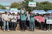 정안뉴스 황도연 기자 | 당진시 석문면은 당진시 석문면체육회(회장 최장량)에서 지난 26일 ‘제33회 석문면민 체육대회’를 성공적으로 개최했다고 29일 밝혔다. 대회가 열린 현대EP 운동장에는 오성환 당진시장을 비롯한 내빈과 선수, 면민 등 1,000여 명이 참석한 가운데 한궁·여자승부차기·제기차기·고무신 던지기·오재미 등 5개 종목으로 경기를 진행했다. 경기에는 석문면 20개 마을과 재인석문면민회 등 20개 팀이 출전했으며, 종합우승은 통정1리가, 준우승은 삼화2리, 3위는 장고항2리가 차지했다. 최장량 회장은 폐회식에서 “대회의 성공적인 진행에 협조해 주신 모든 분들께 감사드리고, 앞으로도 단합된 체육행사를 위해 최선을 다하겠다”고 말했다. 한편, 이날 오후에는 석문면개발위원회가 주관·주최한 ‘제12회 석문면민 한마음 음악축제’가 열려 면민들과 방문객들에게 즐거운 볼거리를 선사했다. 이날 행사에는 치어리더(렛츠치어)의 식전 공연을 시작으로 '현역가왕2' 우승자인 박서진을 비롯해 정미애, 주미성, 조은아, 문상식, 유난이 등 가수들의 초청공연이 이어졌다. 가수들의 축하공연