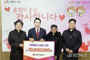 정안뉴스 황도연 기자 | 충남 서산시는 지난 11일 해미국제성지가 어려운 이웃 돕기 성금 1,000만 원을 전달했다고 밝혔다. 시는 이날 시청 시장실에서 이완섭 서산시장, 한광석 해미국제성지 주임신부 등이 참석한 가운데 기탁식을 개최했다. 성금은 연말연시 경제적 어려움을 겪고 있는 이웃에게 온정을 전달하고자 마련됐으며, 충남사회복지공동모금회를 통해 관내 어려운 이웃을 위해 활용될 예정이다. 해미국제성지는 지난 2020년 교황청으로부터 국내에서 유일하게 국제 성지로 승인받았다. 이후 순교자들의 신앙을 기리는 성지이자 국내외 순례객이 찾는 세계적인 순례지로 발돋움하고 있다. 또한, 매년 어려운 이웃 돕기 성금을 기부하는 등 지역 대표 나눔 공동체로서 역할을 확대하고 있다. 한광석 주임신부는 “순교자들의 사랑과 희생정신을 오늘의 이웃 사랑으로 이어가고자 신자들과 함께 정성을 모았다”라며 “힘든 시기를 보내는 이웃들에게 작은 위로와 희망이 되길 바란다”라고 말했다. 이완섭 서산시장은 “해미국제성지가 보여준 지속적인 나눔 실천이 우리 시의 큰 자랑”이라며 “기탁된 성금이