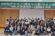 정안뉴스 황도연 기자 | 부여군은 여성문화회관에서 사회복지사들의 권익 신장과 직무 전문성 향상을 위한 “2025년 사회복지사 역량 강화교육”을 추진했다고 29일 밝혔다. 이번 교육은 부여군 내 사회복지시설에서 근무하는 사회복지사 50여 명이 참여하여 “마음을 여는 소통”, “컬러테라피” 등 다양한 프로그램으로 구성됐다. 각 분야 전문가의 강의를 통해 사회복지사들이 자기 관리와 스트레스 해소를 위한 방법을 배우고 동료 간의 유익한 소통을 통해 상호 협력의 중요성을 되새기는 시간을 가졌다. 문영숙 한국사회복지사협회 부여군지회장은 “다양하고 세분된 복지 업무에서 벗어나 나를 돌아볼 수 있는 좋은 시간이었다.”라며 “부여군에서 더 많은 프로그램을 통해 교육의 자리를 마련해 주면 좋겠다.”라고 말했다. 부여군 담당자는 “앞으로도 사회복지사들의 처우와 지위 향상을 위해 지속적으로 노력할 것”이라며, “다양한 소통의 창을 마련할 계획이다.”라고 밝혔다.