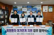 정안뉴스 황은경 기자 | 옥천군은 의료·요양 통합돌봄사업의 일환으로 10일 군청 군수실에서 ‘퇴원환자 재가연계 지원’을 위한 업무협약을 체결했다고 밝혔다. 이번 사업은 오는 3월 27일 시행된다. 이번 협약은 병원 치료를 마친 환자가 가정으로 복귀한 이후에도 지역사회에서 안전하고 지속적인 돌봄 서비스를 받을 수 있도록 지원하기 위해 마련됐다. 협약에 따라 의료기관은 퇴원 예정 환자 가운데 사회·경제적 여건과 신체·기능 수준 등을 종합적으로 고려해 돌봄 필요도가 높은 대상자를 의뢰한다. 옥천군은 의뢰된 대상자에게 방문상담을 실시하고, 보건·의료·요양·돌봄 서비스를 제공할 계획이다. 이날 협약식에는 지역 소재 옥천성모병원과 지역 주민이 다수 이용하는 대전광역시 소재 대전성모병원, 대전선병원 등 3개 의료기관이 참석해 상호 긴밀한 협력을 하기로 했다. 옥천군은 의료기관과의 긴밀한 협력을 바탕으로 군민의 건강과 회복, 안정적인 지역사회 복귀를 지원할 방침이다. 이대정 주민복지과장은 “이번 협약을 계기로 병원 퇴원 이후에도 군민이 지역사회에서 안심하고 생활할 수 있는 돌봄 환경을 만들어 나가겠다