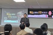 정안뉴스 황정혜 기자 | 부산 동구지역사회보장협의체(민간위원장 이재영)는 지난 13일, 동구종합사회복지관(관장 김창근)에서 동구 안창마을에서 활동 중인 우징 작가의 특강을 성황리에 개최했다. 이번 강의는 실무분과 협의체 특화사업의 일환으로 마련된 것으로, ‘배려의 예술’이란 주제로 협의체 위원과 지역 주민을 대상으로 진행됐다. 우징 작가는 영국의 예술 공간 활용 및 마을 재생 사례, 시각장애인을 위한 작품안내서 사례 등 다양한 경험을 공유하며 예술이 마을 발전과 사회적 배려에 어떻게 기여할 수 있는지를 설명했다. 참석자들은 작가의 활동이 작품 창작을 넘어 지역 주민과의 소통으로 확장되고 있음에 응원을 보내며, 예술을 통해 지역이 더욱 따뜻하고 활력 있게 변화하기를 기대했다.