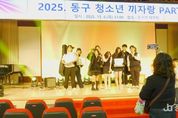 정안뉴스 황정혜 기자 | 부산 동구는 지난 6일 동구청 로비층 대강당에서 청소년 장기자랑 행사인 ‘2025. 동구 청소년 끼자랑 파티’를 성황리에 개최했다. 작년에 이어 올해도 열린 이번 행사는 자라나는 청소년들에게 재능을 뽐내고 특별한 추억으로 남을 무대를 마련하기 위해 추진됐다. 행사는 롯데 자이언츠 치어리더들의 격려공연으로 시작됐으며 관객들의 열렬한 환호 속에 분위기는 한껏 달아올랐다. 치어리더들의 응원에 힘입어 청소년들은 자신감 있게 무대에 올라 팀별 댄스, 노래, 밴드 등 열정적인 공연을 펼쳤다. 부산중, 경남여고, 경남여중, 부산국제영화고, 선화여중, 5개 학교에서 모인 12팀 63명의 청소년들은 이날 가지고 있는 끼를 마음껏 뽐내며 무대의 주인공이 됐다. 또 장기자랑을 구경하러 온 청소년들은 친구들을 응원하기 위해 응원봉이 날아갈 기세로 흔들었다. 이날 행사는 청소년들과 주민들이 함께 어울려 즐기고 응원하는 파티 같은 분위기로 막을 내렸다. 행사 만족도 설문에서 청소년들은 “너무 재밌었다. 또 하면 좋겠다”, “정말 행복한 시간이었다” 등 긍정적인