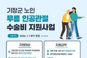 정안뉴스 황정혜 기자 | 기장군은 오는 2026년부터 부산시 최초로 ‘어르신 무릎인공관절 수술비 지원사업’을 확대 시행한다고 23일 밝혔다. 군은 기존 국가 지원사업으로 기초생활수급자 및 차상위계층 등에 한정됐던 지원 범위를 대폭 확대해, 기준 중위소득 150% 이하(2025년도 2인 가구 기준 월 소득 5,898,987원) 어르신까지 수술비를 지원한다. 사업은 2026년 1월 1일부터 연중 시행되며 기장군 자체 예산을 투입해 진행된다. 지원 대상은 기장군에 1년 이상 주민등록이 되어있고 기준 중위소득 150% 이하의 60세 이상 어르신이다. 수술의료기관에서 ‘인공관절치환술(슬관절)’ 진단을 받았다면 수술 전에 신청 가능하다. 지원 금액은 한쪽 무릎 기준 최대 100만원으로, 본인부담금에 해당하는 수술비 내에서 지원된다. 수술 전 보건소에 방문하여 신청서와 진단서 등을 제출하면 자격 확인 후 대상자로 확정되며, 수술 후 90일 이내에 지원금 청구가 가능하다. 단, 비급여 항목, 통원진료비, 지원대상자 선정 이전 발생한 의료비 등은 제외되며, 실손보험금, 노인의료