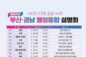 정안뉴스 황정혜 기자 | 부산시와 '부산․경남 행정통합 공론화위원회'는 행정통합에 대한 시민들의 의견을 듣기 위해 '2025년 부산지역 하반기 현장 설명회'를 개최한다고 밝혔다. 설명회는 오늘(12일) 오전 10시 부산도시공사 아르피나 그랜드볼룸에서 해운대구․기장군 주민을 대상으로 시작하여 12월 초까지 부산 지역에서 총 8회에 걸쳐 순차적으로 개최될 예정으로, 부산·경남 행정통합에 관심 있는 시민이라면 누구나 참여할 수 있다. ▲[해운대·기장군] 11월 12일 오전 10시 아르피나 그랜드볼룸 ▲[중구·동구] 11월 17일 오후 2시 아스티호텔 그랜드볼룸 ▲[동래·금정·연제] 11월 19일 오후 2시 동래구청 동래홀 ▲[북구·강서] 11월 21일 오후 2시 강서구청 구민홀 ▲[영도구] 11월 24일 오후 2시 라발스호텔 볼레로룸 ▲[부산진구·사상구] 11월 26일 오후 2시 부산진구청 대강당 ▲[남구·수영구] 12월 3일 오후 2시 남구청 대강당 ▲[서구·사하구] 12월 5일 오후 2시 서구청 본관 대회의실에서 열릴 예정이다. 시와 위원회는 지난 상반기 시도민 토론회에 이어 부산·경남 행정통합에 대한 시민들의