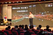 정안뉴스 황정혜 기자 | 부산 동구는 지난 16일 오후 3시, 동구청 대강당에서 해양수산부 임시청사 동구 이전을 기념하는 '해수부와 함께하는 북항시대 동구, 구민과 미래를 말하다' 행사를 개최했다. 이날 행사는 약 400여 명의 구민이 참석한 가운데 성황리에 진행됐으며, 김진홍 동구청장이 직접 나서 해양수산부 임시청사 이전의 의미를 설명하고, 북항 중심 해양수도 거점도시로 도약할 동구의 미래 비전을 공유하는 자리로 꾸며졌다. 이어진 순서에서는 구민과의 대화 시간이 진행되어, 다양한 의견을 청취하고 해수부 이전에 따른 동구 발전과 생활 현안에 대한 생각을 나누며 활발히 소통하는 뜻깊은 시간을 가졌다. 참석자들은 이번 이전을 새로운 출발점으로 삼아, 신청사 역시 동구 북항 지역에 유치되기를 한마음으로 희망하며, 뜨거운 열기와 굳은 의지를 모아 동구 발전의 미래에 대한 기대감을 함께 다졌다. 김진홍 동구청장은 “해양수산부 임시청사 이전은 동구 발전의 중요한 전환점”이라며, “앞으로도 구민과 함께 힘을 모아 북항 중심 해양수도 거점도시로 성장해 나가겠다”고 밝혔다.