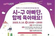 정안뉴스 황정혜 기자 | 부산시는 오는 9월 14일 오후 3시 부산시민공원 다솜광장에서 온 가족이 함께 즐기고 체험할 수 있는 '시-구 아빠단, 함께 육아해요!' 행사를 개최한다고 밝혔다. ‘함께육아 인식개선 사업’의 하나로 열리는 이번 행사는 부산에 거주하며 영유아 자녀를 둔 가정의 육아를 응원하고 출산·양육 친화적 환경을 조성하고자 마련됐다. 지난해(2024년) 시와 구·군이 함께한 ‘제1회 협동사업’에 이어 열리는 ‘제2회 협동사업’으로, 시 100인의 아빠단과 ‘부산형 육아친화마을 사업’에 참여하는 10개 구의 아빠단이 참여한다. 이날 행사에는 시 100인의 아빠단과 10개 구 육아아빠단 등 총 200여 가정 800여 명이 참여한다. 부산에서 육아하는 가정이 한자리에 모여 서로를 응원하고 공감하며 아이와 함께 즐거운 시간을 보낼 예정이다. 10개 참여 구는 ▲서구 ▲부산진구 ▲동래구 ▲남구 ▲북구 ▲해운대구 ▲강서구 ▲연제구 ▲수영구 ▲사상구다. 행사는 가족·팀 간 협동을 위한 ▲종이박스 기차 만들기 ▲기차역 스탬프 여행 ▲친환경 컵상추 만들기 ▲저글맨 앤드(&) 벌룬 버블 공