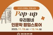 정안뉴스 황정혜 기자 | (재)부산진문화재단은 지역문화와 인문 감성을 결합한 2025 중장년 인문프로그램 ‘우리동네 인문학 팝업스토어’를 오는 11월 19일부터 12월 14일까지 전포밭개마을센터에서 운영한다고 밝혔다. 이번 팝업스토어는 전포동의 일상과 기억을 주제로 예술·기록·공예·건축·전통주 등 다양한 콘텐츠를 시민이 직접 체험할 수 있도록 기획됐다. 프로그램은 총 4개 주제로 구성되며, 주차마다 지역 예술가 및 활동가와 협업을 통해 선보인다. △ 필아트×전포밭개마을센터(11.19.~11.23.) △ 서면미술관×故김진희 작가(11.26.~11.30.) △ 서면미술관×캘리토닉 건축사 유창욱(12.3.~12.7.) △ 제이케이크래프트×하마터면협동조합(12.10.~12.14.) 특히 이번 팝업스토어는 판매수익 전액을 전포동 발전기금으로 환원해 지역과 창작자·주민이 함께 만드는 지속 가능한 문화 순환 구조를 실현한다는 점에 의미가 크다. 재단은 이를 통해 인문정신문화의 생활 속 확산과 지역 커뮤니티 자생력 강화에 이바지할 것으로 기대한다고 전했다. 팝업스토어 운영시간은 팝업스토어