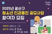 정안뉴스 기자 | 광주 광산구가 시민의 청소년 인권 향상 활동을 지원하는 ‘2025년 광산구 청소년 인권 증진 공모사업’을 추진한다. 광산구가 올해 처음 시행하는 이 사업은 학교 폭력, 디지털 인권침해 등 다양한 청소년 인권 문제 해결을 돕고, 청소년 인권 보장 기반을 조성하는 것이 목적이다. 광산구는 이주배경‧중도입국 청소년, 학교 밖 청소년 등의 권리 보장, 인권 존중 문화 확산 등 청소년 인권과 관련한 다양한 활동에 총 1,000만 원을 지원한다. 광산구는 17일까지 지역에서 활동하는 청소년 단체, 학부모 단체 등을 대상으로 사업에 참여할 단체를 공개 모집한다. 신청은 ‘보탬e(이)’ 사이트(지방보조금관리시스템)에서 할 수 있다. 사이트 주 화면 ‘추천 공모사업’을 참고하거나 검색창에서 ‘광산구’를 검색하면 신청 방법, 필요한 서류 등을 확인할 수 있다. 서류 제출은 17일 오후 6시까지 해야 한다. 광산구는 심사를 거쳐 3월 중 선정 결과를 개별 통보할 예정이다. 박병규 광산구청장은 “청소년 인권 증진 공모사업이 청소년 인권에 대한 인식을