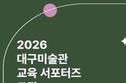 정안뉴스 안정주 기자 | 대구문화예술진흥원 대구미술관은 2026년 한 해 동안 지역 문화예술발전과 미술관 교육 현장을 함께 만들어 갈 문화자원봉사자 ‘교육 서포터즈’를 모집한다. 교육 서포터즈는 시민과 미술관을 연결하는 교육 매개자로서 미술관 교육프로그램 운영 지원과 관람객 안내, 온라인 콘텐츠 작성 등 다양한 방식으로 교육 현장에 참여한다. 이를 통해 참여 청년들은 미술관 교육 운영 전반을 경험하며 문화예술 전문 인력으로 성장할 수 있는 기반을 마련하게 된다. 이번 모집은 미술관 교육 및 문화예술에 관심 있는 청년(만 19세~39세)을 대상으로 하며, 총 20명 내외를 선발한다. 활동기간은 2026년 4월부터 1년간이다. 월 2회 이상(1회 4시간) 참여를 기본으로 한다. 모집 공고는 2월 24일부터 대구미술관 누리집을 통해 확인할 수 있으며, 서류 접수는 3월 3일부터 3월 11일 18시까지 전자우편으로 진행된다. 이후 서류 및 면접전형을 거쳐 3월 말 최종 합격자를 발표하고, 4월부터 본격적인 활동을 시작할 예정이다. 교육 서포터즈에게는 1365 자원봉사포털을 통한 봉사 시간 인정과 함께 직