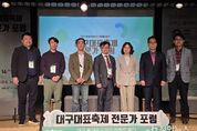 정안뉴스 안정주 기자 | 대구문화예술진흥원은 지난 4월 16일 오후 2시 대구예술발전소 3층 수창홀에서 ‘대구 축제의 도약과 미래를 묻다’의 주제로 대구대표축제 전문가 포럼을 성황리에 마무리했다. 이번 포럼은 축제 전문가, 대구시민 등 60여 명이 참석한 가운데 지난 대구 축제의 발자취를 돌아보고 ‘파워풀대구페스티벌’의 전략을 심도 있게 논의했다. 특히 시민 공동체의 주도적인 참여와 활동의 중요성이 핵심 화두로 떠올랐다. 방성택 대구문화예술진흥원 문화예술본부장의 개회사와 이현미 대구광역시 문화콘텐츠과장의 축사로 시작됐으며, 전문가들이 연사로 나서 발표를 진행했다. 기조강연을 맡은 오동욱 대구정책연구원 사회문화연구실장은 약 50년에 걸친 대구 축제의 역사로 포문을 열었다. 시대별 축제의 변화상을 짚어보고 대구 축제가 도시 브랜딩에 기여한 가치를 재조명했다. 주제 발제에서는 황병중 (사)문화관광진흥연구원장이 전국 문화관광축제 931건의 추이를 통해 축제 트렌드를 분석했다. 특히 대구만의 역사성을 담은 상징물을 축제 콘텐츠로 제안했으며, 지역 공동체 참여와 축제 산업화의 중