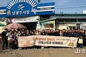 정안뉴스 안정주 기자 | 광주문화재단은 2월 13일 설 명절을 앞두고 지역 전통시장 활성화와 지역경제 상생을 위해 남광주시장에서 임직원이 참여하는 전통시장 장보기 행사를 진행했다. 이번 행사는 설 명절을 맞아 임직원들이 직접 전통시장을 방문해 명절 준비 물품을 구매함으로써 전통시장 이용을 장려하고, 지역 상인들과의 교류를 통해 따뜻한 명절 분위기를 조성하고자 마련됐다. 이날 행사에는 광주문화재단 임직원 약 80여 명이 참여해 온누리상품권을 활용하여 가족과 함께 나눌 명절 음식과 생활용품을 구매하는 등 전통시장 소비 촉진에 동참했다. 광주문화재단 배동환 사무처장은 “전통시장은 지역 주민의 일상과 정이 살아 있는 공간”이라며, “이번 장보기 행사가 지역 상인들에게 보탬이 되고, 따뜻한 설 명절 분위기를 나누는 계기가 되길 바란다”고 말했다.