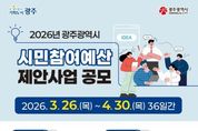 정안뉴스 안정주 기자 | 광주광역시는 2027년도 예산 과정에 시민참여를 보장하기 위한 ‘시민참여예산 제안사업’을 4월30일까지 접수한다. 시민참여예산은 재정 운영의 투명성을 높이고, 재정민주주의를 강화해 시민 삶의 질을 향상시키기 위한 제도다. 광주시에 거주하는 시민이나 단체는 누구나 사업을 제안할 수 있다. 제안 대상 사업은 단년도에 완료되는 광주시 소관 사무로 ▲시정참여형 ▲청년참여형 등 두 가지를 접수한다. 시정참여형은 시민 생활과 밀접하고 시민 수혜도가 높은 5억원 이하 사업이다. 청년참여형은 일자리, 창업지원, 맞춤형 교육, 창작활동 등 청년 정책 사업으로 예산 제한 없이 제안할 수 있다. 다만, 민원성 사업, 특정단체 중복성 사업, 일회성 공연 축제, 공익에 저해되는 사업 등은 심사에서 제외한다. 참여는 광주시 누리집 시민참여예산시스템 주민e참여시스템 혹은 시민광장 광주온으로 온라인 신청할 수 있다. 전자우편과 우편(광주 서구 내방로111, 예산담당관실) 신청도 가능하다. 광주시는 접수된 제안사업에 대해 소관부서 검토, 시민투표, 시민