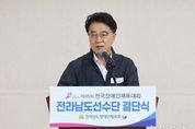 정안뉴스 안정주 기자 | 전라남도의회 김태균 의장은 10월 20일 전남체육회관에서 열린 제45회 전국장애인체전 전남선수단 결단식에 참석했다. 이날 결단식에는 강위원 경제부지사와 김대중 도교육감을 비롯해 선수단과 임원 등 250여 명이 참석했으며 참가계획 보고, 선수단기 수여 및 선수대표 선서 순으로 진행됐다. 김태균 의장은 축사에서 “장애를 넘고 자신과의 싸움을 이겨낸 선수들의 노력이야말로 그 어떤 메달보다 값지고 빛나는 승리의 상징이다.”며 “올해 대회에서도 전남선수단이 감동의 역사를 써나갈 것이라 믿는다.”고 말했다. 이어 “도전은 실패의 반대말이 아니라, 성장의 또 다른 이름이다.”며 “선수들 모두 부상 없는 경기, 선의의 경쟁으로 마지막 순간까지 최선을 다해 주시길 부탁드린다.”고 강조했다. 한편, 제45회 전국장애인체전은 10월 31일부터 11월 5일까지 부산광역시 일원에서 개최된다. 17개 시·도 6,100여 명의 선수들이 참가하며 전남은 30개 종목에 400여 명의 선수가 참가한다.