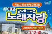 정안뉴스 안정주 기자 | KBS 전국노래자랑 무대가 익산을 찾아온다. 익산시는 오는 2월 13일 익산시실내체육관에서 전국노래자랑 '익산시 편'이 공개 녹화로 진행된다고 19일 밝혔다. 방송은 3월 말께 전국에 방영될 예정이다. 이번 무대는 시민의 염원이었던 익산시 신청사 개청을 다함께 축하하고, 힘찬 출발을 알리기 위해 마련됐다. 초대 가수로 박상철과 서주경, 양지은, 정서주, 김용빈이 출연해 축하 무대를 꾸민다. 본선 무대에는 예선을 통과한 15~17팀의 시민 참가자가 무대에 오르게된다. 참가 신청은 오는 23일부터 2월 5일까지 읍·면·동 행정복지센터 또는 시 행정지원과에서 선착순 300명까지 가능하다. 예심은 2월 11일, 솜리문화예술회관에서 열린다. 시 관계자는 "신청사 준공은 익산의 미래를 여는 상징적인 순간"이라며 "전국노래자랑을 통해 시민과 함께 신청사 개청을 축하하고, 익산의 밝은 에너지를 전국에 전하겠다"고 말했다.