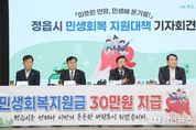 정안뉴스 안정주 기자 | 정읍시와 정읍시의회가 장기화된 경기 침체로 어려움을 겪는 시민들의 생활 안정을 위해 다시 한번 뜻을 모았다. 이학수 정읍시장과 박일 정읍시의회 의장은 15일 시청 대회의실에서 기자회견을 열고, 모든 시민에게 1인당 30만원의 ‘민생회복지원금’을 지급한다고 밝혔다. 이번 지원금 지급 결정은 고물가와 난방비 부담 등으로 인해 시민들이 체감하는 생활 위기가 한계에 다다랐다는 판단에 따른 것이다. 실제 지난 1일 한국은행 조사 결과에 따르면, 정부의 민생회복소비쿠폰 사용 종료 이후 카드 매출 증가율이 7월 4.9%에서 8월 1.3%로 급락한 것으로 나타났다. 또한, 12월 상인들이 체감하는 경기전망지수(BSI) 역시 전월 대비 6.5 포인트 하락하는 등 지역 경제 전반에 뚜렷한 경고등이 켜진 상황이다. 이와 관련해 정읍시는 지난해에도 전 시민에게 1인당 30만원의 지원금을 지급해 가계 부담을 덜고 지역 경제에 활력을 불어넣은 바 있다. 이번 결정은 이러한 정책적 연속성 아래, 민생 안정을 시정의 최우선 과제로 삼은 정읍시와 시의회가 긴밀히 협의한 결과다.