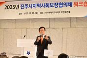 정안뉴스 김재홍 기자 | 진주시는 27일 지역사회보장협의체 읍면동 위원 100여 명이 참석한 가운데 아시아레이크사이드호텔에서 ‘2025 지역사회보장협의체 워크숍’을 개최했다. 이번 행사는 복지 사각지대 발굴과 지역주민들의 사회보장 증진을 위해 활동하고 있는 읍면동 협의체 위원들의 역량 강화와 사기진작을 목적으로 마련됐다. 이날 워크숍에서는 읍면동별 협의체의 활동 성과를 공유하고 변화하는 복지 환경에 빠르게 대응할 수 있는 지역복지 주체로서의 역할을 재정립하며, 협의체 활성화 방안을 함께 모색했다. 아울러 ‘협의체 회원을 위한 힐링’을 주제로 조정호 강사의 특강이 진행돼 위원들이 재충전하고 소통하는 뜻깊은 시간이 됐다. 진주시협의체 김병윤 위원장은 “읍면동에서 지역민들의 복지증진을 위해 애쓰고 계신 위원님들께 감사드리며, 오늘 자리가 위원님들 상호교류의 장이자 좋은 정보를 공유할 수 있는 뜻깊은 시간이 되기를 바란다”고 말했다. 조규일 진주시장은 “따뜻한 마음과 봉사로써 우리 사회의 그늘지고 불편한 곳을 보듬으며 복지 지킴이 역할을 다하고 계신 위원님들의 노고에 감사드린다”면서 “진주시도 다양한 복지