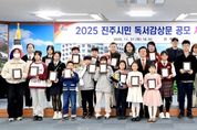 정안뉴스 김재홍 기자 | 진주시는 지난 27일 시청 3층 문화강좌실에서 ‘2025 진주시민 독서감상문 공모 시상식’을 개최했다. ‘진주시민 독서감상문 공모’는 독서 문화운동 전개로 시민의 독서 의욕을 고취시켜 건전한 독서습관 형성과 독서문화 활성화를 위해 매년 실시되고 있다. 올해 공모는 진주시민을 대상으로 초등부, 중·고등부, 일반부 등으로 나눠 지난 7월 1일부터 9월 26일까지 진행됐다. 올해 선정된 도서는 《구구옥-이별을 도와드립니다》, 《별하약방》, 《스파클》, 《행복의 기원》 등이다. 이번 공모전에는 총 525명의 시민이 참여했으며, 접수된 공모작 가운데 예심과 본심을 거쳐 28명의 수상자가 선정됐다. 최우수상은 ▲초등부 서어진(도동초 5) 학생 ▲중·고등부 정초우(대곡중 1) 학생 ▲일반부 강건중(충무공동) 씨가 수상의 영광을 안았다. 이 외에도 우수상 9명과 장려상 16명, 우수 지도교사상 2명 등 모두 30명이 수상의 영예를 안았다. 수상작은 진주시립도서관 ‘석류알’ 문집에 수록되며, 시립도서관 7개소를 포함한 다양한 기관에 배부돼 활용될 예정이다. 조규일 진주시장은 “