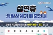정안뉴스 안정주 기자 | 금천구는 설 연휴 기간 생활쓰레기(일반생활쓰레기, 음식물쓰레기, 재활용품) 수거를 일시 중단한다고 밝혔다. 청소대행업체 환경미화원들의 휴식권을 보장하고 안전한 근무 환경을 조성하기 위한 조치라고 구는 설명했다. 이에 따라 14일부터 17일까지 4일간 생활쓰레기 배출이 금지된다. 연휴 기간 중 배출하지 못한 생활쓰레기는 18일 오후 6시부터 배출하면 19일 0시부터 수거할 예정이다. 구는 생활쓰레기 배출이 일시 중단됨에 따라 14일부터 18일까지 5일간 주민 불편을 최소화하기 위한 청소상황실과 환경공무관 기동반을 편성·운영하겠다고 밝혔다. 생활쓰레기 관련 민원에 신속히 대응한다는 방침이다. 또한 연휴가 끝나는 19일부터 인력과 장비를 총동원해 적체된 생활쓰레기를 일제 수거할 계획이다. 유성훈 금천구청장은 “"평소에 묵묵히 금천의 청결을 책임지고 있는 환경미화원 분들께 감사드린다“라며 ”설 연휴 기간 생활쓰레기 수거를 중단해 불편하시겠지만 많은 이해와 적극적인 참여를 부탁드린다”라고 말했다.