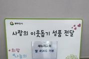 정안뉴스 안정주 기자 | 동두천시 불현동 새누리교회는 11월 3일 불현동 행정복지센터에 백미 45kg을 전달했다고 밝혔다. 새누리교회는 불현동에 위치한 개신교 교단으로, 매년 나눔을 실천하며 지역사회에 따뜻한 온정을 나누고 있다. 민경엽 담임목사는 “지역의 소외된 이웃들이 추운 겨울 따뜻한 연말을 보낼 수 있길 바란다”며 “작은 정성이지만 도움이 됐으면 좋겠다”라고 전했다. 김영미 불현동장은 “지역사회를 위해 꾸준히 나눔을 실천해 주신 데 감사드리며, 후원해 주신 백미는 도움이 필요한 취약계층에 소중히 전달하겠다”라고 말했다.