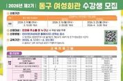 정안뉴스 안정주 기자 | 인천 동구는 오는 3월 9일~4월 3일까지‘2026년 제2기 동구 여성회관’ 수강생을 모집한다고 밝혔다. 오는 4월 1일부터 3개월 과정으로 진행되는 제2기 정규강좌 프로그램은 ▲실내인테리어(도배 및 필름) ▲등라탄공예 ▲요리·공예 프로그램 등 총 26개 과정으로 운영되며, 직장인을 위한 바리스타 2급 야간반 및 퇴근 후 ‘뚝딱 반찬’ 등 야간 강좌도 운영될 예정이다. 또한 브런치 만들기 강좌를 1개월 단기 특강으로 운영해 주민들이 부담 없이 참여할 수 있도록 구성했으며, 일일 무료 특강으로는 ▲핸드드립&퓨전떡 만들기 ▲딸기도지마롤케이크 만들기 ▲패션도식화(옷그리기) 특강이 준비된다. 수강 신청은 인천시 거주자를 대상(동구 주민 우선)으로 여성회관 홈페이지를 통해 선착순 접수하며 온라인 접수에 어려움을 겪는 자, 동구사랑상품권, 평생교육 바우처 사용자는 여성회관으로 방문하여 신청할 수 있다. 김찬진 동구청장은“여성회관 교육 프로그램이 주민들의 자기계발과 역량강화에 실질적인 도움이 되기를 희망한다”며 “여성뿐 아니라 남성 수강생도 많은 문의와 참여를 바란다”고 말했다.