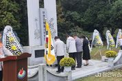 정안뉴스 안정주 기자 | 정읍시는 6·25전쟁 당시 공비 토벌작전 중 산화한 150여 명의 무명 학도병을 기리는 위령제를 지난 25일 산내면 매죽리 산내무명용사묘에서 거행했다. 이날 위령제는 이들의 넋을 달래고 숭고한 희생을 추모하기 위해 마련됐으며, 참배객들이 참여해 전사자들의 명복을 빌었다. 이곳 무명용사의 묘역은 6·25전쟁 당시 격전지였다. 9·28 서울수복 이후 지리산 일대에 잔류한 인민군 소탕을 위해 1950년 11월 13일, 국군 제11사단 13연대 3대대 12중대 소속 학도병 150여 명이 공비 토벌작전에 참전했다. 이들은 산내면 하매마을 앞산에서 인민군과 전투를 벌이다 적군의 작전에 휘말렸고, 전력·화력 부족으로 전원이 장렬하게 산화했다. 호국용사들의 시신은 안타깝게도 근처 숯구덩이 속에 방치됐다. 1951년 7월경, 지역주민인 故 허병욱 씨가 남아있던 46위의 시신을 수습해 현재의 장소에 안치했다. 이후 1987년 10월 13일 묘역과 추모비가 건립됐으며, 그때부터 합동 위령제를 봉행해 오고 있다. 올해 위령제는 故 허병욱 씨의 자제인 허재원 전 이장과 정읍시가 함께 거행하며 추모