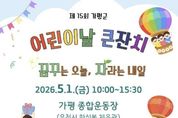 정안뉴스 안정주 기자 | 가평군은 오는 5월 1일 오전 10시 가평종합운동장에서 ‘제15회 가평군 어린이날 기념행사’를 개최한다. 가평군어린이집연합회와 가평군육아종합지원센터가 공동 주관하는 이번 축제는 기념행사와 공연, 놀이, 체험 부스 등 다채로운 프로그램으로 꾸며진다. 행사는 조종청소년오케스트라의 식전 공연으로 막을 올린다. 이어지는 본행사에서는 어린이 대표의 어린이 헌장 선언문 낭독과 군수 및 군의장의 기념사·축사, 공동 주관 기관장들의 개회 선언이 진행된다. 어린이날 유공자 및 모범어린이 6명에 대한 표창은 행사 이후인 5월 4일 가평군 월례조회 시 별도로 수여할 계획이다. 현장에는 가평경찰서, 교육지원청, 보건소 등 17개 기관과 단체가 참여해 총 26개의 체험 및 홍보 부스를 운영한다. 주요 행사는 △문화다양성 이해교육 △에코백 만들기 △장난감 수리 및 진단 등이며, 에어바운스와 페이스 페인팅 등 놀이 시설도 함께 운영한다. 가족 단위 방문객을 위한 맞춤형 프로그램도 풍성하다. 시간대별로 영유아 보물찾기, 초등학생 프리킥 챌린지를 비롯해 아빠 로켓 던지기와 엄마 림보 이벤트 등 온 가족이 참여할 수