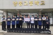 정안뉴스 안정주 기자 | 양평군은 지난 22일 양동고등학교·메덩골정원F&B가 개군 한우와 양동 부추 오일 등 지역 식자재로 만든 볶음밥, 함박스테이크, 샐러드로 구성된 행복나눔 도시락 50세트를 전달했다고 밝혔다. 김충호 양동고등학교 교장은 “호텔조리학과 학생들이 전공을 살린 재능기부 활동으로 직접 도시락을 준비하며 나눔의 가치를 실천하는 계기가 됐다”며 “앞으로도 지역사회와 함께하는 활동을 이어가겠다”고 말했다. 이은주 복지정책과장은 “학생들이 정성을 담아 준비한 도시락이 우리 이웃들에게 큰 힘이 될 것”이라며 “따뜻한 나눔을 실천해 주신 양동고등학교·메덩골정원F&B에 깊이 감사드린다”고 말했다. 이날 전달된 도시락은 양평지역자활센터를 통해 중·장년 1인 취약가구 등에 전달돼 든든한 한 끼를 제공하고 따뜻한 정을 나누는 의미 있는 시간이 됐다.